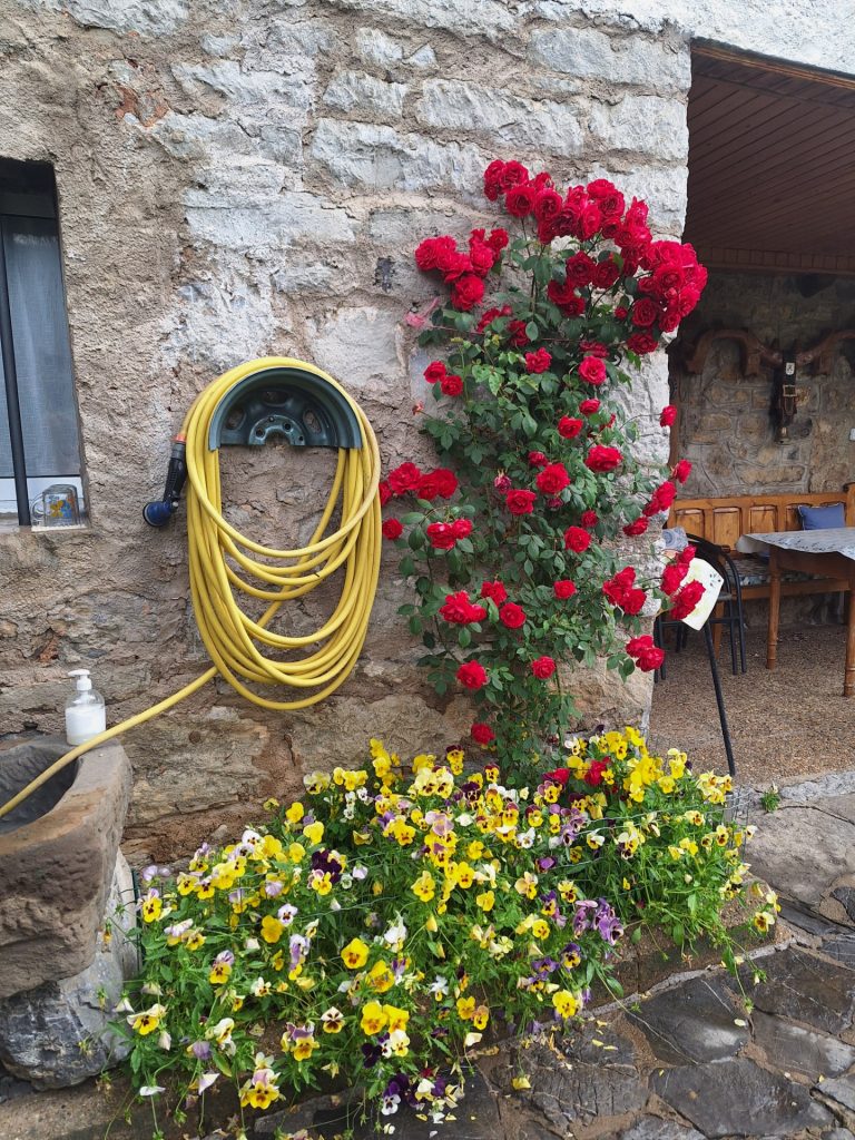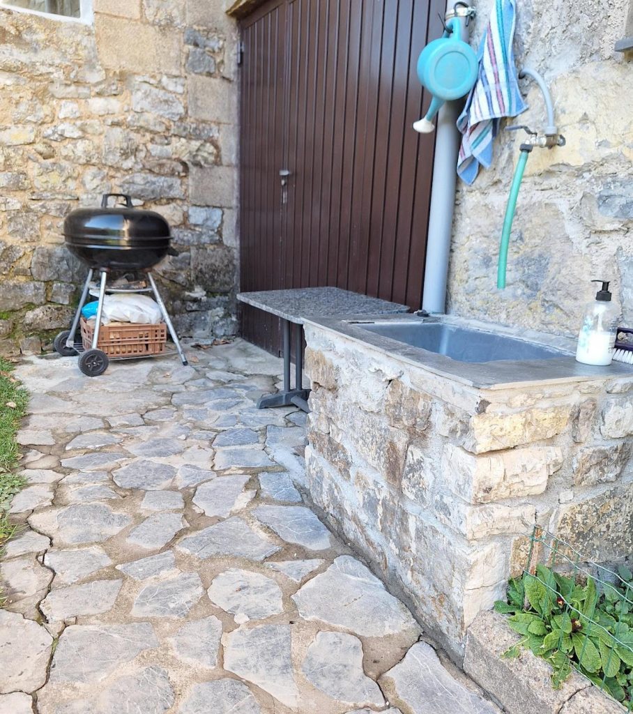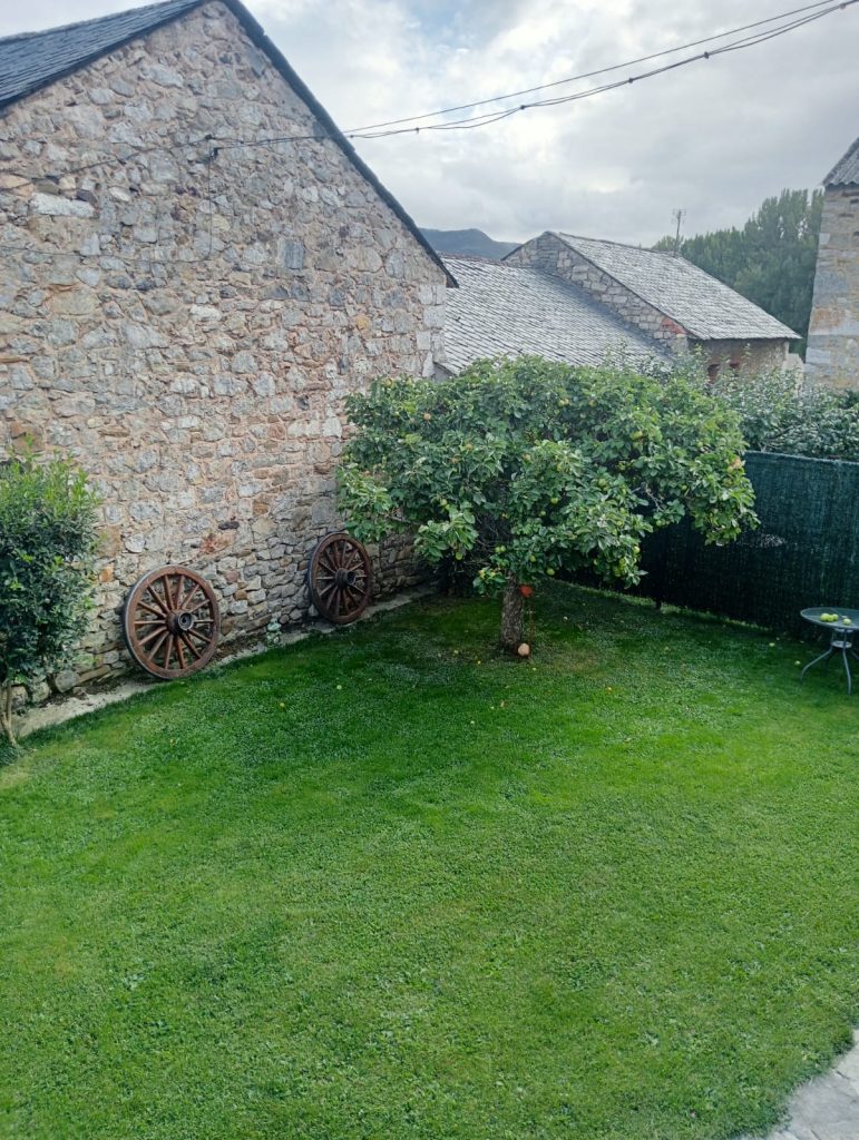 Además se puede  disfrutar del jardín, del sol en las tumbonas o de la sombra del manzano y del porche retirados del fresco. También hay una parrilla y una pila de piedra  con grifo de agua.